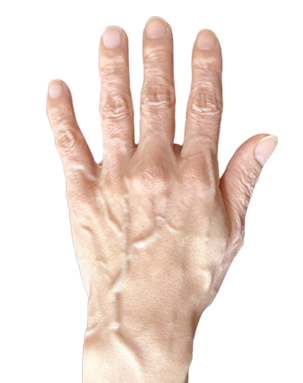 1. When hands and feet appear bony and uneven due to visible veins and volume loss