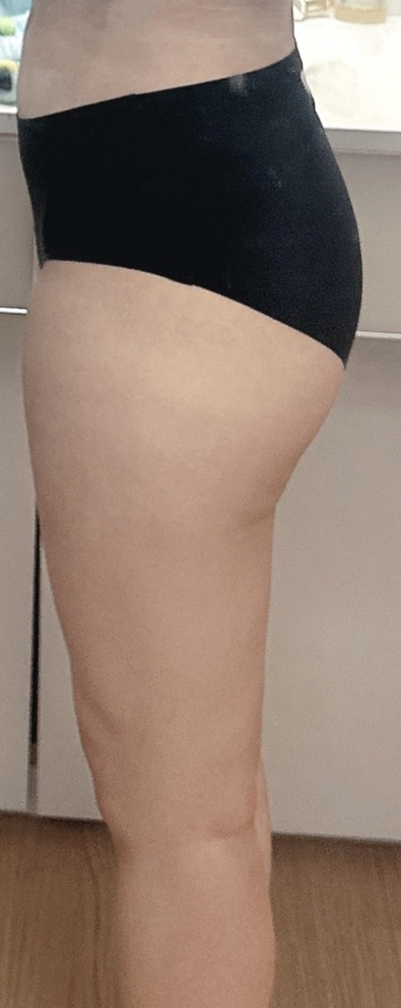 초반에 딴딴하고 불편한 느낌은 거의 완전히 사라졌고 청바지 핏이 너무 예뻐져서 대만족 중입니다. 평생 허벅지 사이가 떨어진 적이 없는 삶을 살아왔는데 지금은 일부러 붙일래야 붙여지지 않을 정도로 예쁘게 쏙 잘 빠졌어요.
