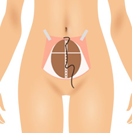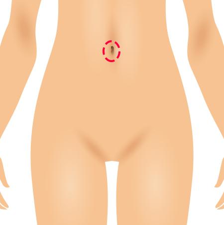 If rectus abdominis muscle separation is present, bring the stretched abdominal wall (muscles and fascia) together and tighten it at the center.